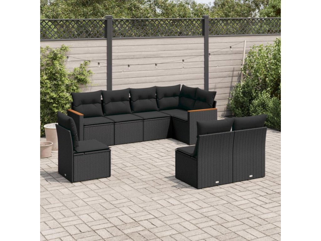 8dílná zahradní sedací souprava s poduškami černá polyratan 3226041