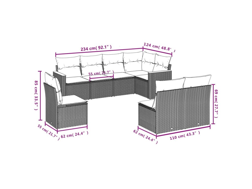 8dílná zahradní sedací souprava s poduškami černá polyratan 3226042