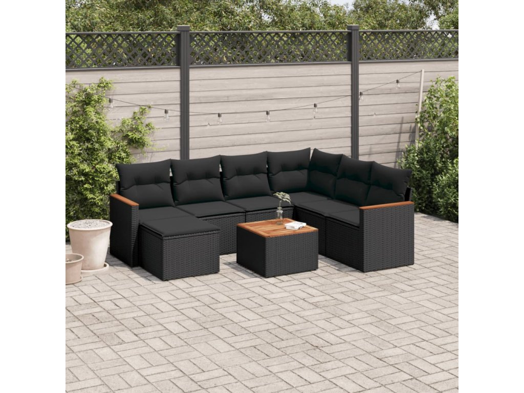 8dílná zahradní sedací souprava s poduškami černá polyratan 3226209