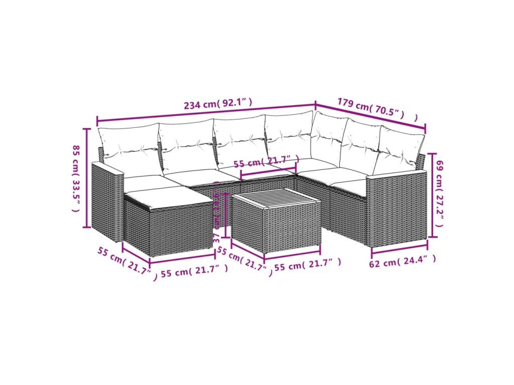 Tato zahradní sedací souprava je dokonalým doplňkem vaší zahrady, terasy nebo dvorku a poskytne vám pohodlné a příjemné místo, kde si můžete povídat s rodinou a přáteli nebo jen tak odpočívat a užívat si pobyt venku.