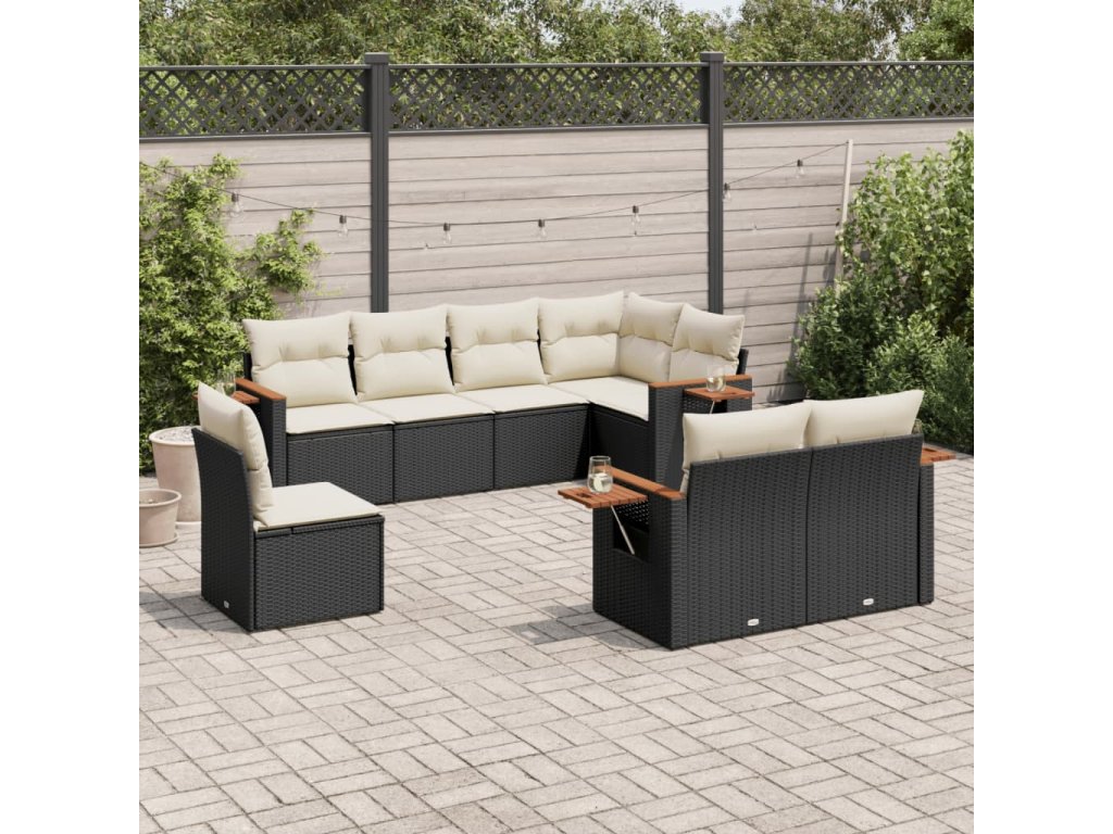 8dílná zahradní sedací souprava s poduškami černá polyratan 3227001