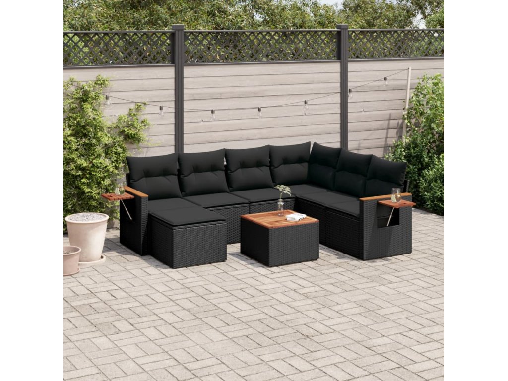 8dílná zahradní sedací souprava s poduškami černá polyratan 3227049