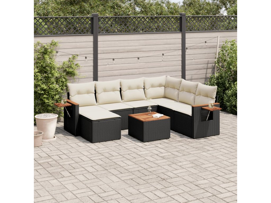 8dílná zahradní sedací souprava s poduškami černá polyratan 3227050
