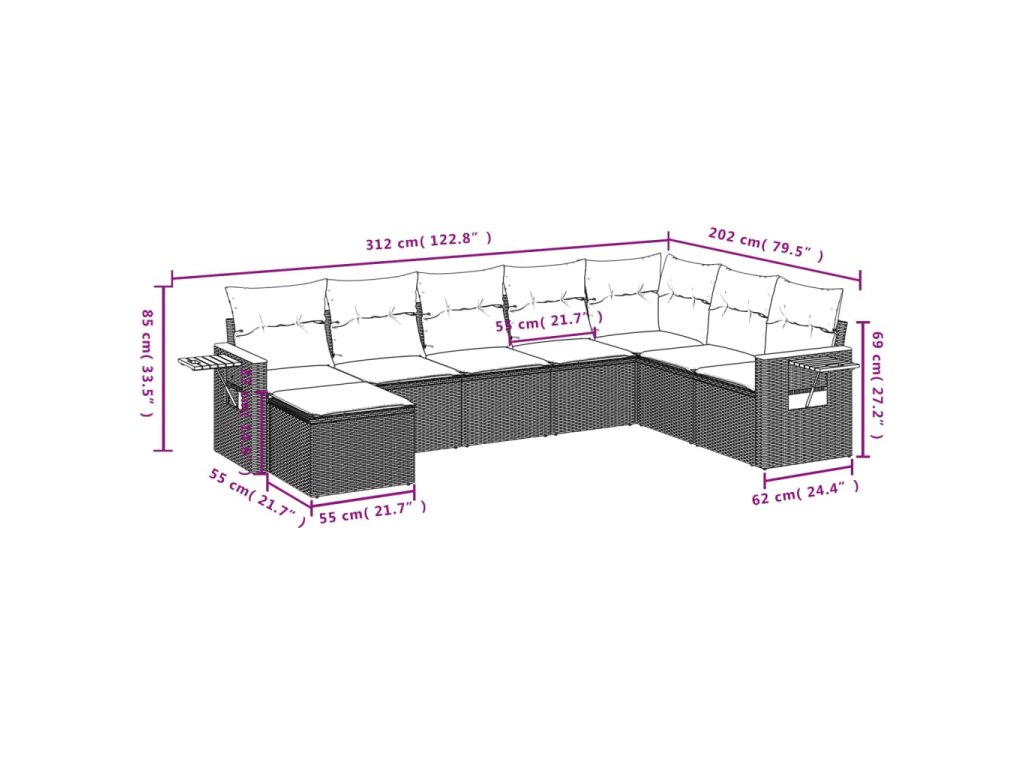 8dílná zahradní sedací souprava s poduškami černá polyratan 3227084