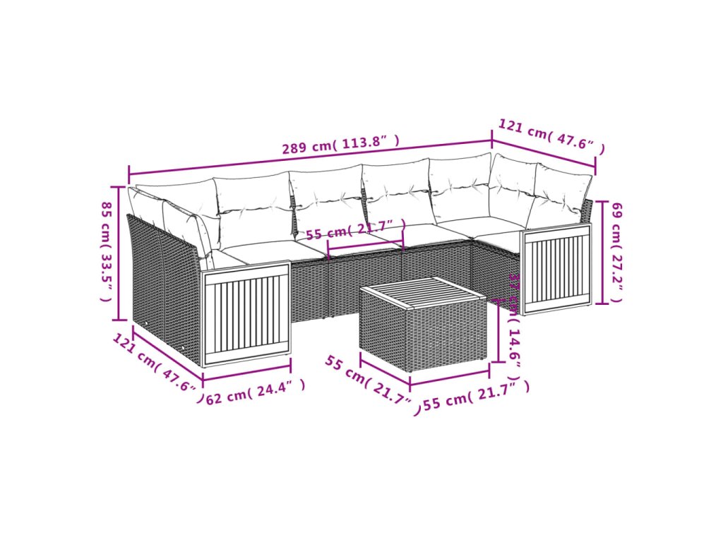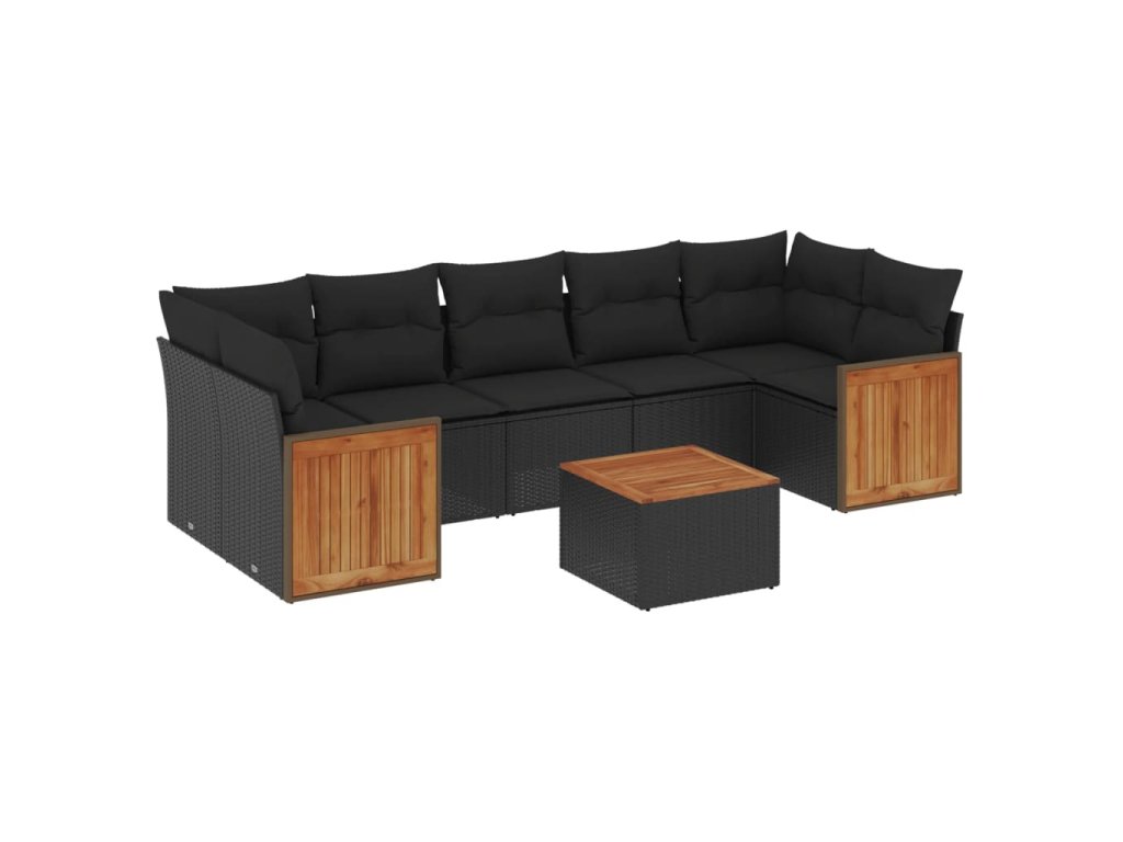 8dílná zahradní sedací souprava s poduškami černá polyratan 3227490