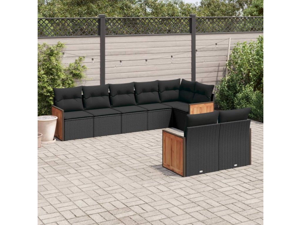 8dílná zahradní sedací souprava s poduškami černá polyratan 3227826