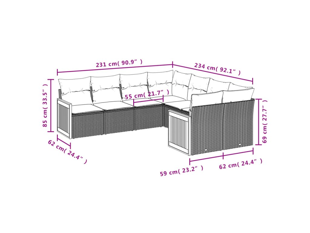 Tato zahradní sedací souprava je dokonalým doplňkem vaší zahrady, terasy nebo dvorku a poskytne vám pohodlné a příjemné místo, kde si můžete povídat s rodinou a přáteli nebo jen tak odpočívat a užívat si pobyt venku.