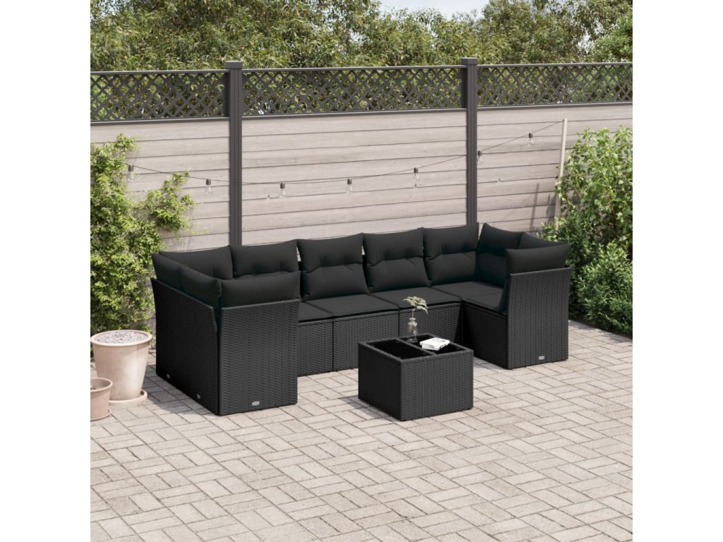 8dílná zahradní sedací souprava s poduškami černá polyratan 3249124