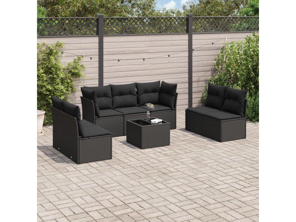8dílná zahradní sedací souprava s poduškami černá polyratan 3249254