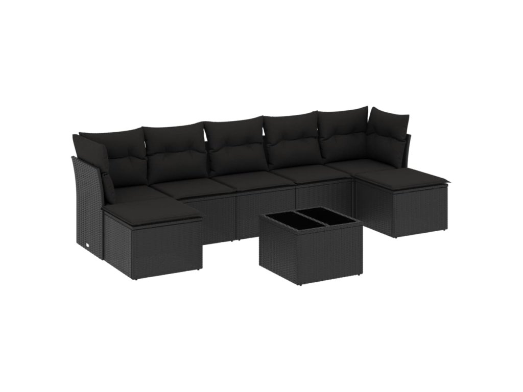 8dílná zahradní sedací souprava s poduškami černá polyratan 3249874