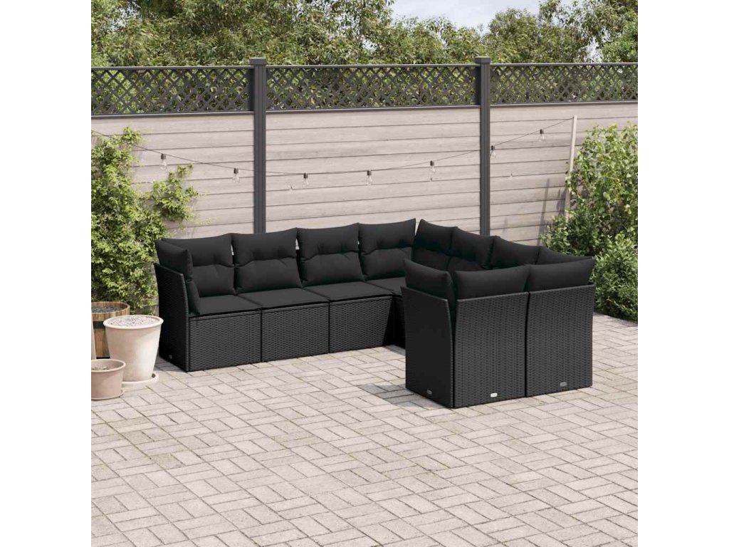 8dílná zahradní sedací souprava s poduškami černá polyratan 3250424