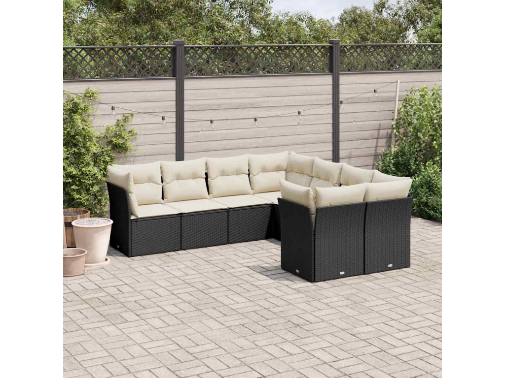 8dílná zahradní sedací souprava s poduškami černá polyratan 3250425