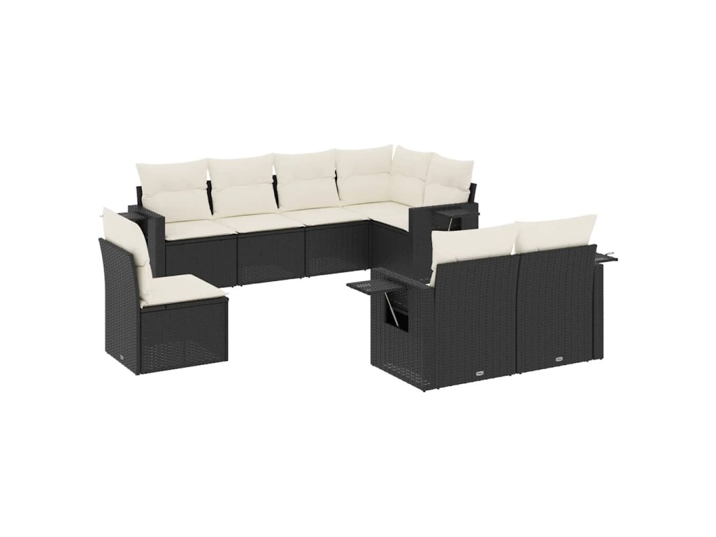 8dílná zahradní sedací souprava s poduškami černá polyratan 3252773