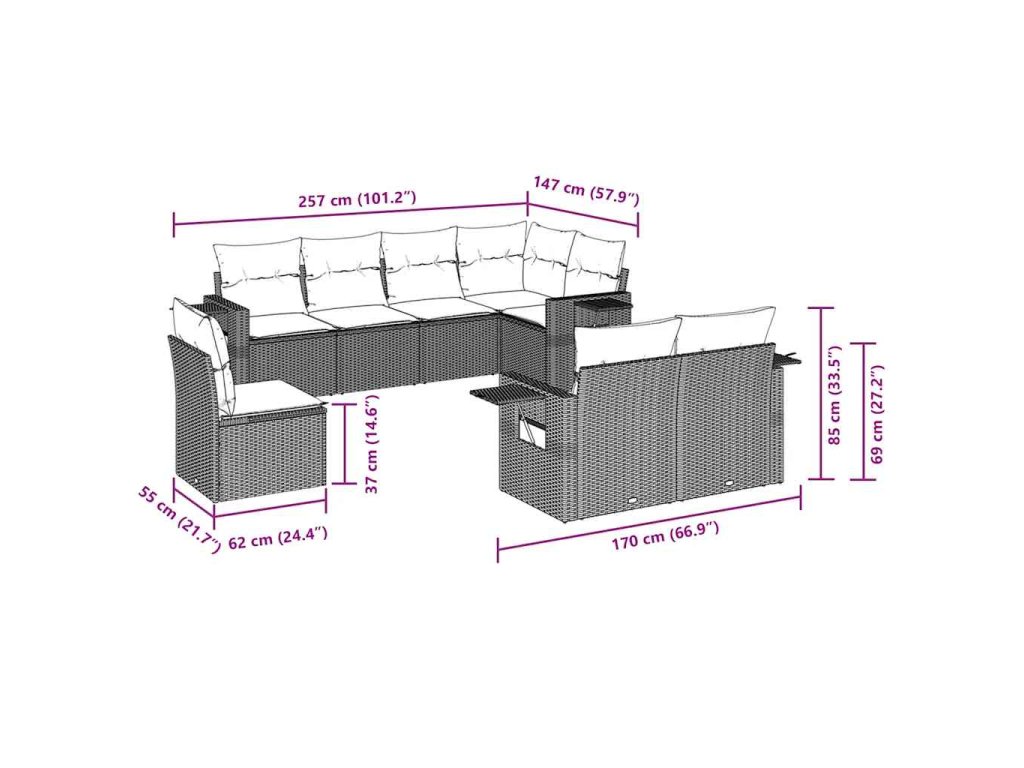 Tato zahradní sedací souprava je dokonalým doplňkem vaší zahrady, terasy nebo dvorku a poskytne vám pohodlné a příjemné místo, kde si můžete povídat s rodinou a přáteli nebo jen tak odpočívat a užívat si pobyt venku.
