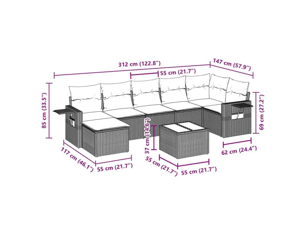 Tato zahradní sedací souprava je dokonalým doplňkem vaší zahrady, terasy nebo dvorku a poskytne vám pohodlné a příjemné místo, kde si můžete povídat s rodinou a přáteli nebo jen tak odpočívat a užívat si pobyt venku.