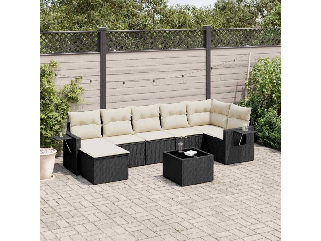 8dílná zahradní sedací souprava s poduškami černá polyratan 3252823
