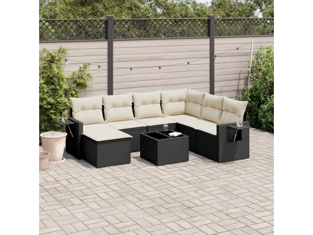 8dílná zahradní sedací souprava s poduškami černá polyratan 3252843