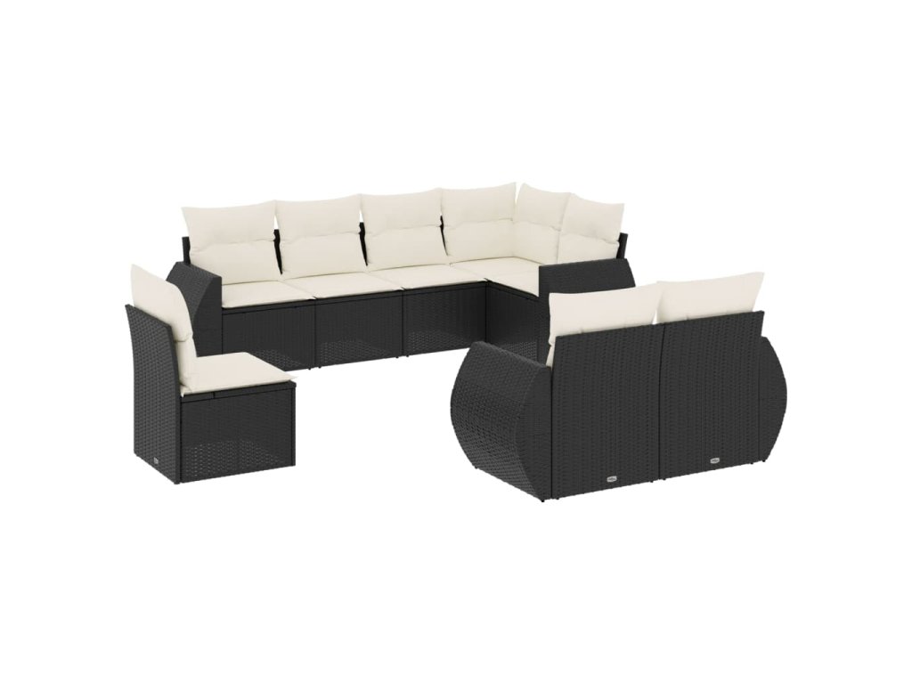 8dílná zahradní sedací souprava s poduškami černá polyratan 3253973