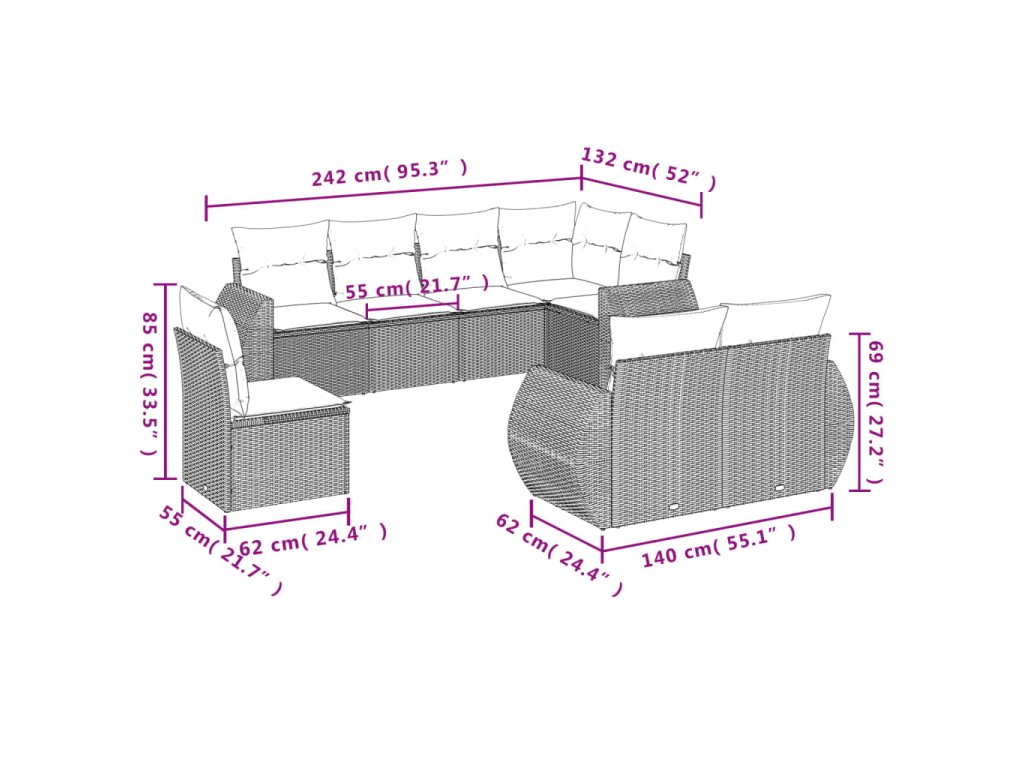Tato zahradní sedací souprava je dokonalým doplňkem vaší zahrady, terasy nebo dvorku a poskytne vám pohodlné a příjemné místo, kde si můžete povídat s rodinou a přáteli nebo jen tak odpočívat a užívat si pobyt venku.