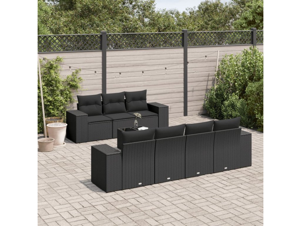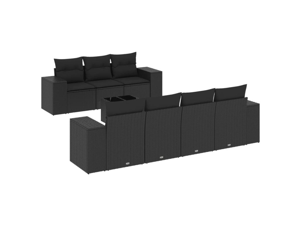 8dílná zahradní sedací souprava s poduškami černá polyratan 3254662