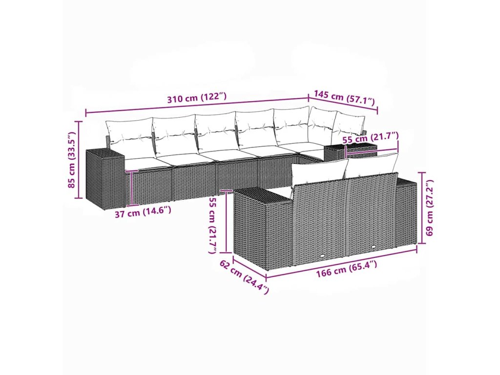Tato zahradní sedací souprava je dokonalým doplňkem vaší zahrady, terasy nebo dvorku a poskytne vám pohodlné a příjemné místo, kde si můžete povídat s rodinou a přáteli nebo jen tak odpočívat a užívat si pobyt venku.