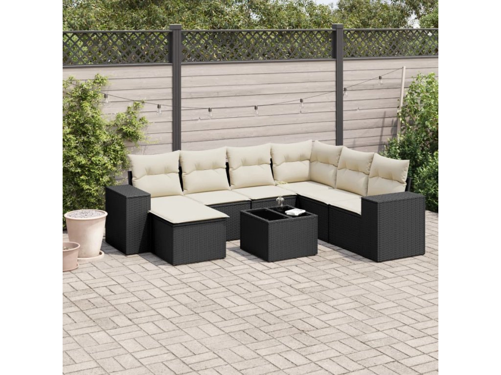 8dílná zahradní sedací souprava s poduškami černá polyratan 3255243
