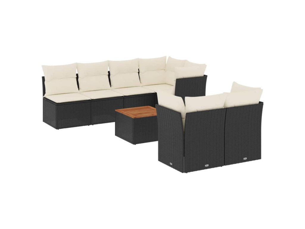 8dílná zahradní sedací souprava s poduškami černá polyratan 3255846