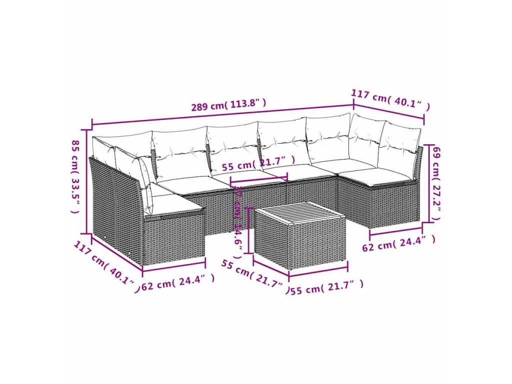 8dílná zahradní sedací souprava s poduškami černá polyratan 3255902