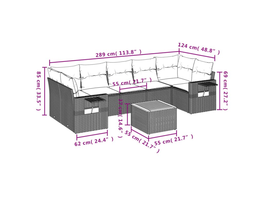 8dílná zahradní sedací souprava s poduškami černá polyratan 3256804