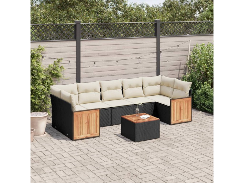 8dílná zahradní sedací souprava s poduškami černá polyratan 3259893