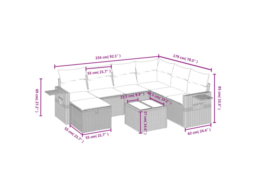 Tato zahradní sedací souprava je dokonalým doplňkem vaší zahrady, terasy nebo dvorku a poskytne vám pohodlné a příjemné místo, kde si můžete povídat s rodinou a přáteli nebo jen tak odpočívat a užívat si pobyt venku.