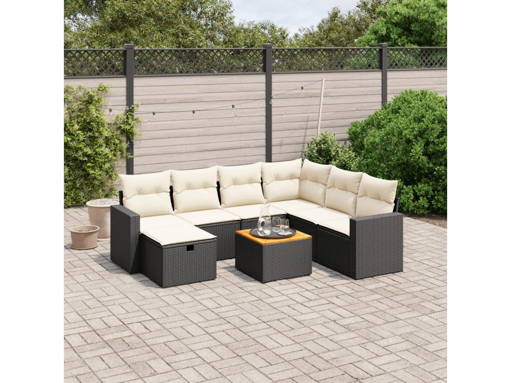 8dílná zahradní sedací souprava s poduškami černá polyratan 3264850