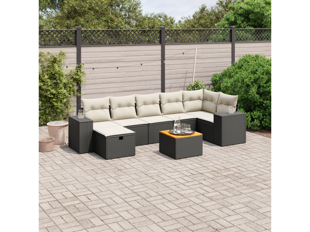 8dílná zahradní sedací souprava s poduškami černá polyratan 3265179
