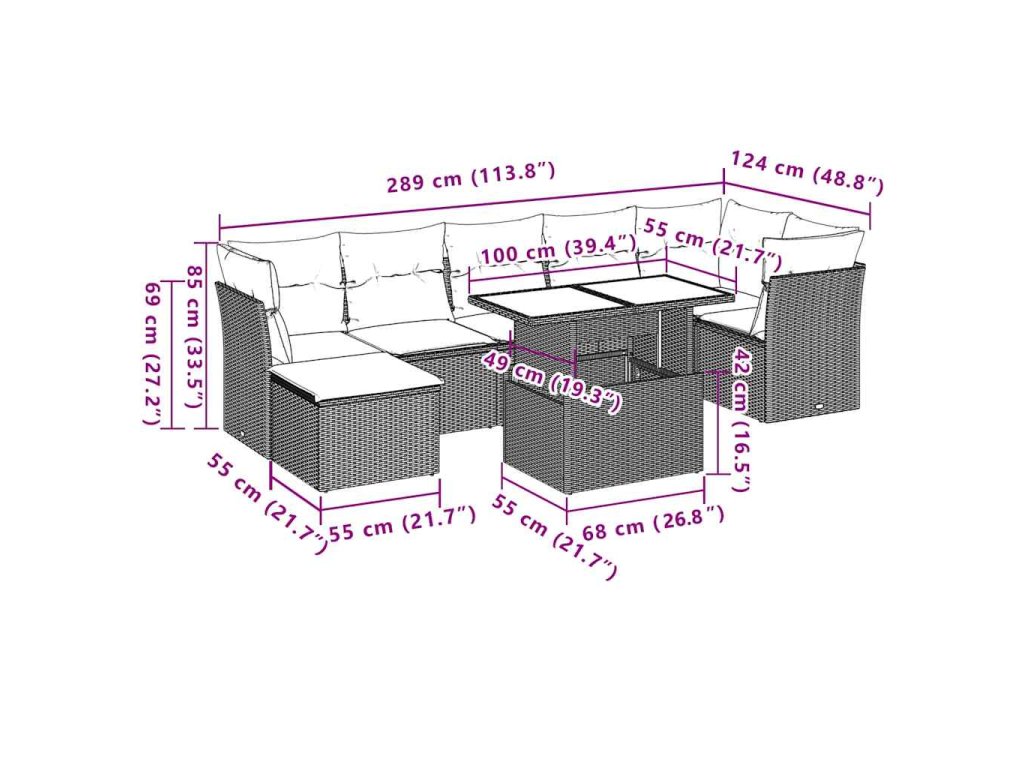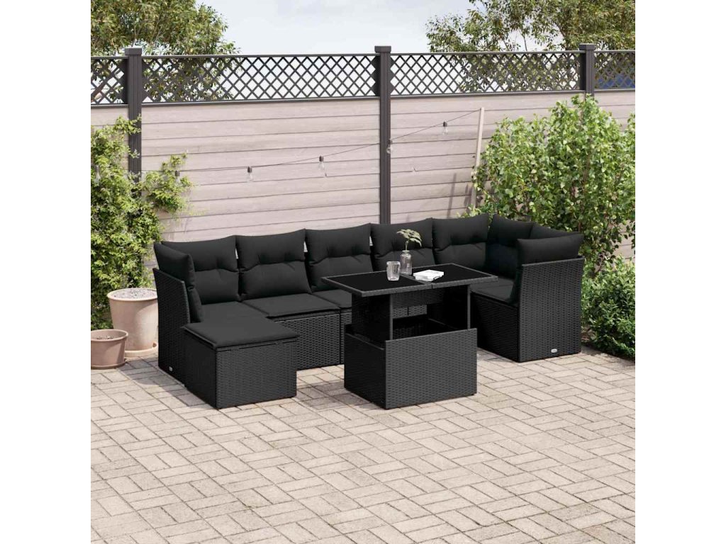 8dílná zahradní sedací souprava s poduškami černá polyratan 3266745