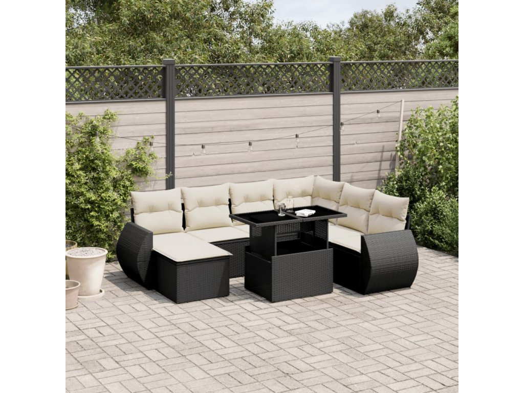 8dílná zahradní sedací souprava s poduškami černá polyratan 3268696