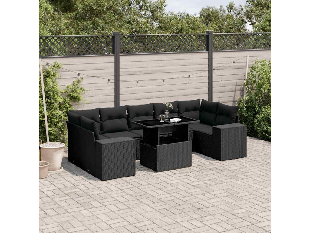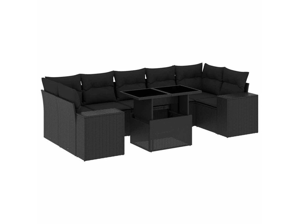 8dílná zahradní sedací souprava s poduškami černá polyratan 3269035