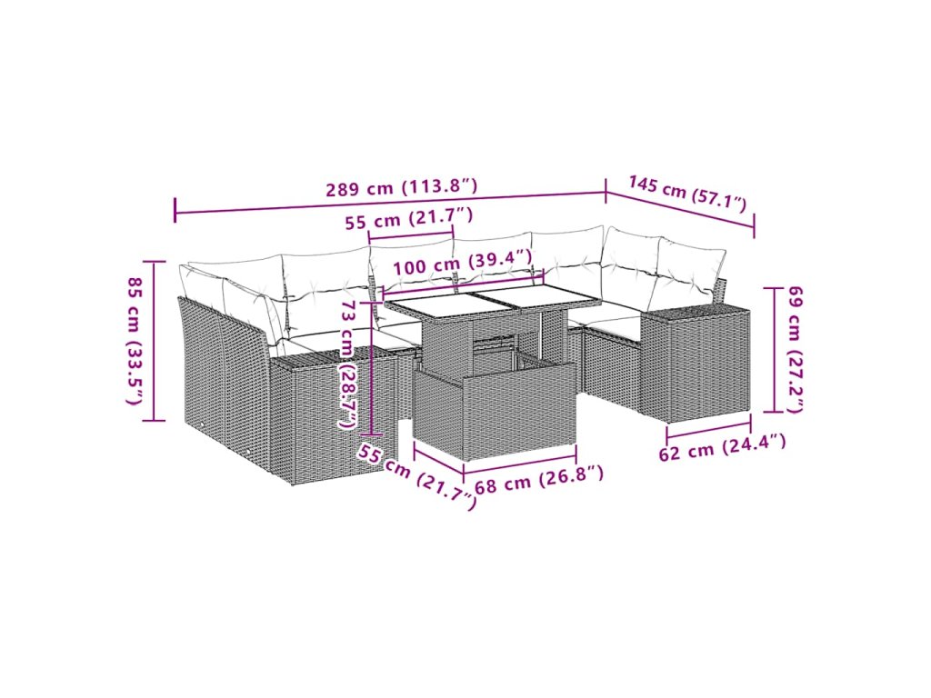 Tato zahradní sedací souprava je dokonalým doplňkem vaší zahrady, terasy nebo dvorku a poskytne vám pohodlné a příjemné místo, kde si můžete povídat s rodinou a přáteli nebo jen tak odpočívat a užívat si pobyt venku.