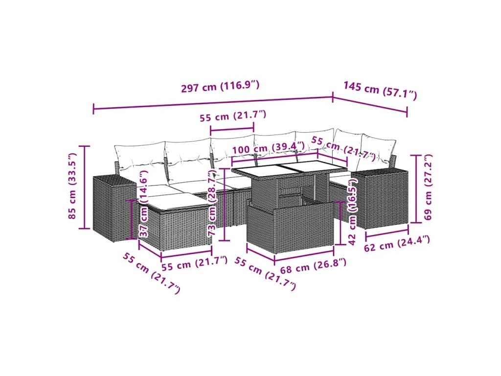 Tato zahradní sedací souprava je dokonalým doplňkem vaší zahrady, terasy nebo dvorku a poskytne vám pohodlné a příjemné místo, kde si můžete povídat s rodinou a přáteli nebo jen tak odpočívat a užívat si pobyt venku.
