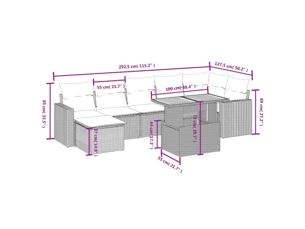Tato zahradní sedací souprava je dokonalým doplňkem vaší zahrady, terasy nebo dvorku a poskytne vám pohodlné a příjemné místo, kde si můžete povídat s rodinou a přáteli nebo jen tak odpočívat a užívat si pobyt venku.