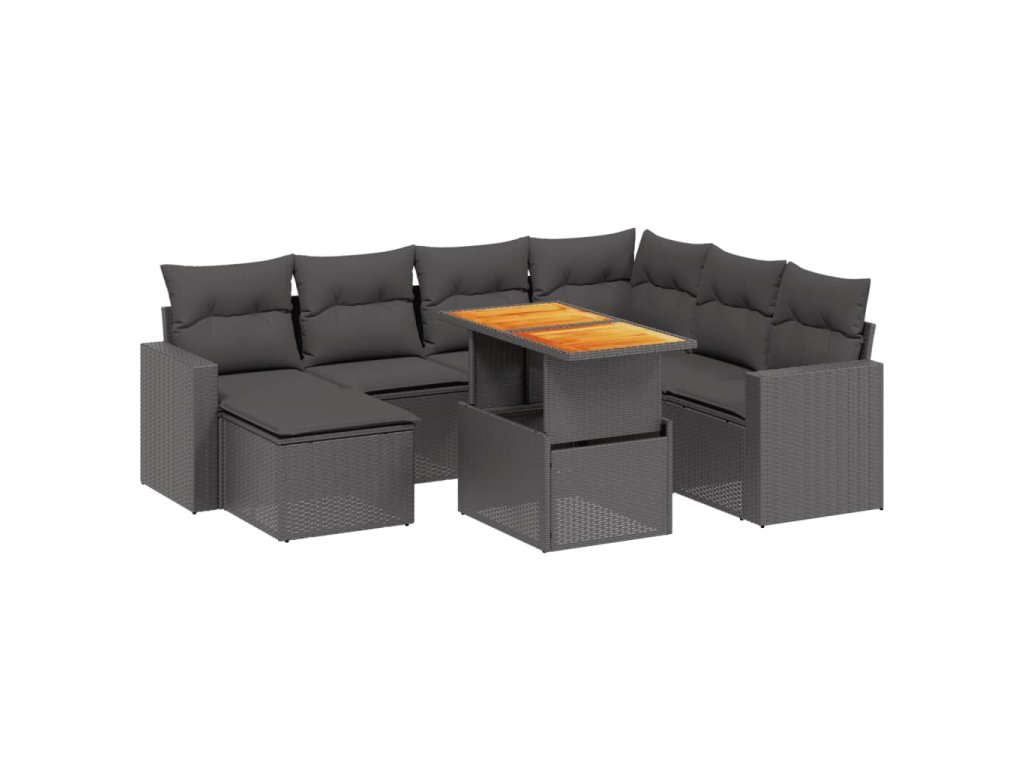 8dílná zahradní sedací souprava s poduškami černá polyratan 3271426