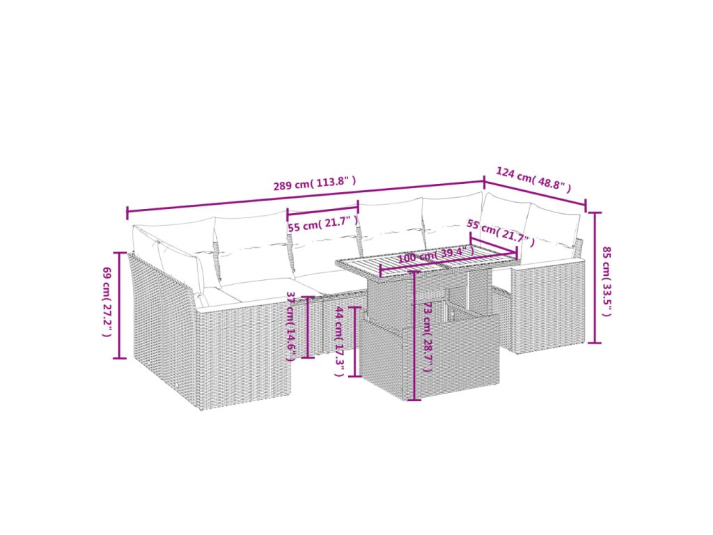 Tato zahradní sedací souprava je dokonalým doplňkem vaší zahrady, terasy nebo dvorku a poskytne vám pohodlné a příjemné místo, kde si můžete povídat s rodinou a přáteli nebo jen tak odpočívat a užívat si pobyt venku.