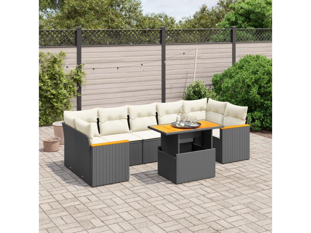 8dílná zahradní sedací souprava s poduškami černá polyratan 3272988