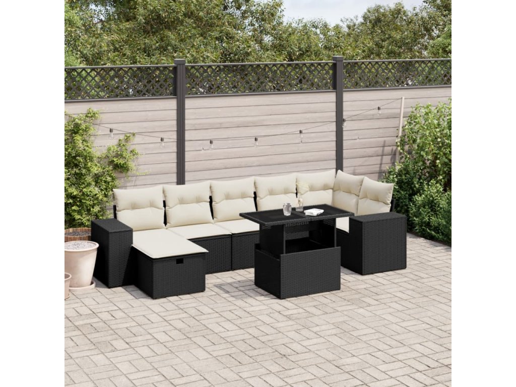 8dílná zahradní sedací souprava s poduškami černá polyratan 3275306