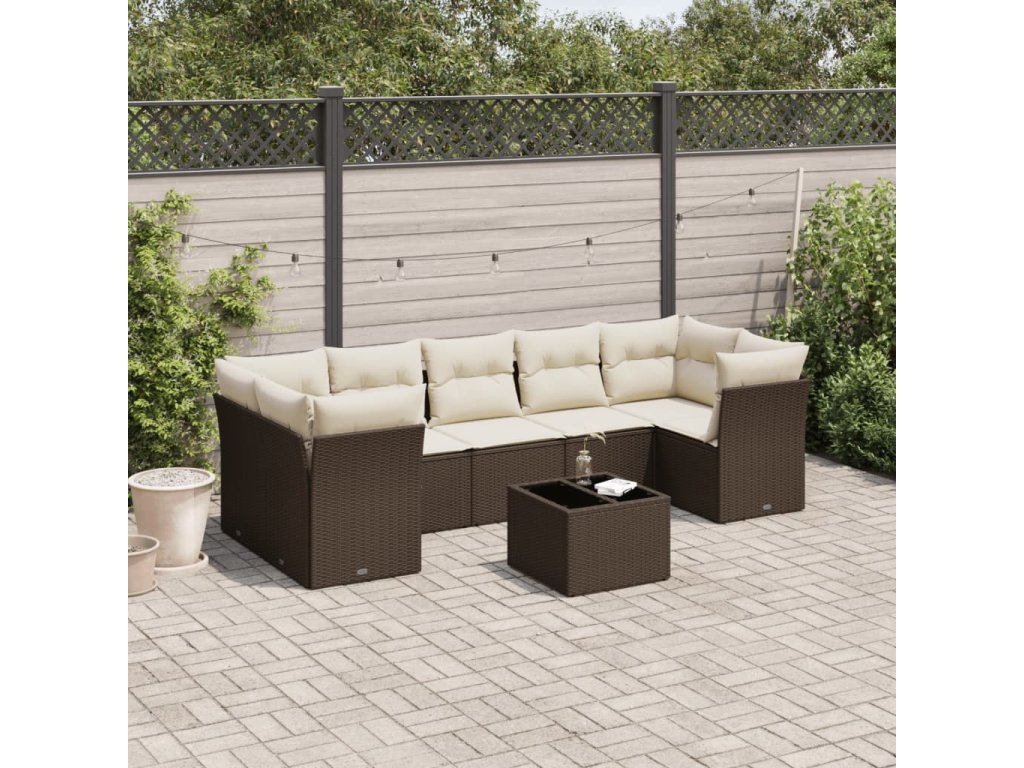 8dílná zahradní sedací souprava s poduškami hnědá polyratan 3217293