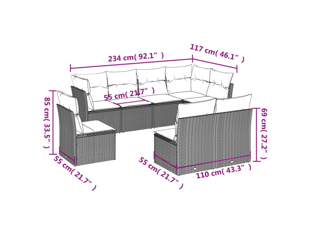 8dílná zahradní sedací souprava s poduškami hnědá polyratan 3217763