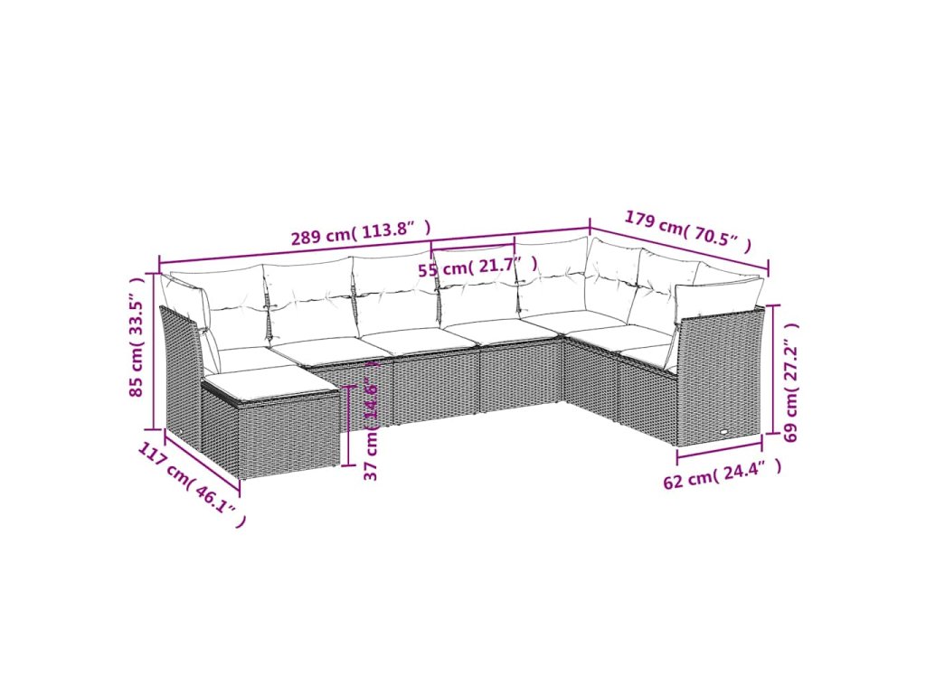 Tato zahradní sedací souprava je dokonalým doplňkem vaší zahrady, terasy nebo dvorku a poskytne vám pohodlné a příjemné místo, kde si můžete povídat s rodinou a přáteli nebo jen tak odpočívat a užívat si pobyt venku.