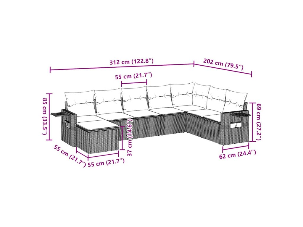 - Modulární design: Tato sada venkovního nábytku se vyznačuje modulární konstrukcí, je tedy zcela flexibilní a lze ji snadno přemisťovat, takže si můžete uspořádat venkovní nábytek dle vašich potřeb.