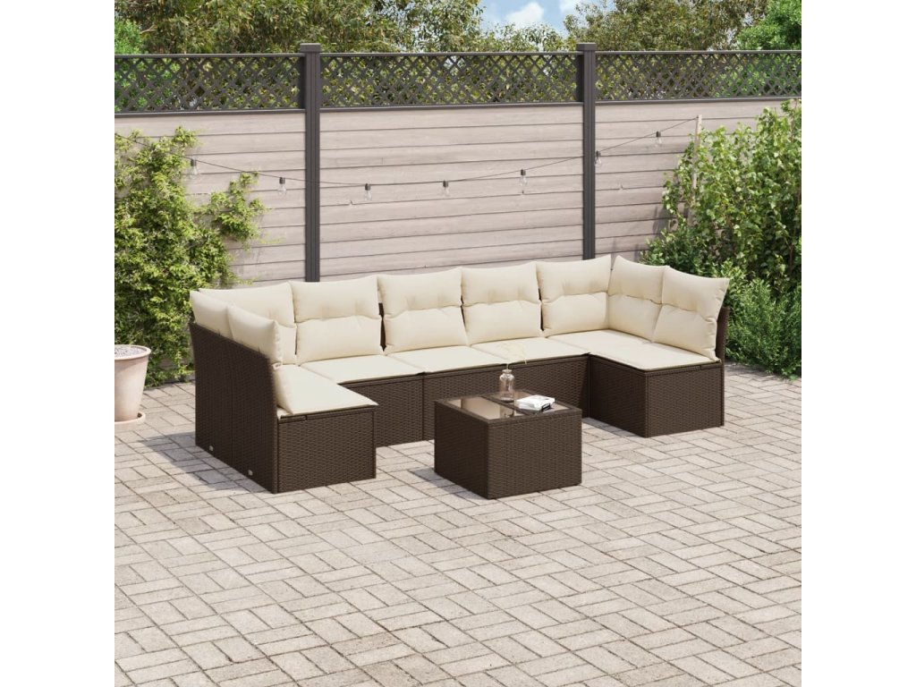 8dílná zahradní sedací souprava s poduškami hnědá polyratan 3249282