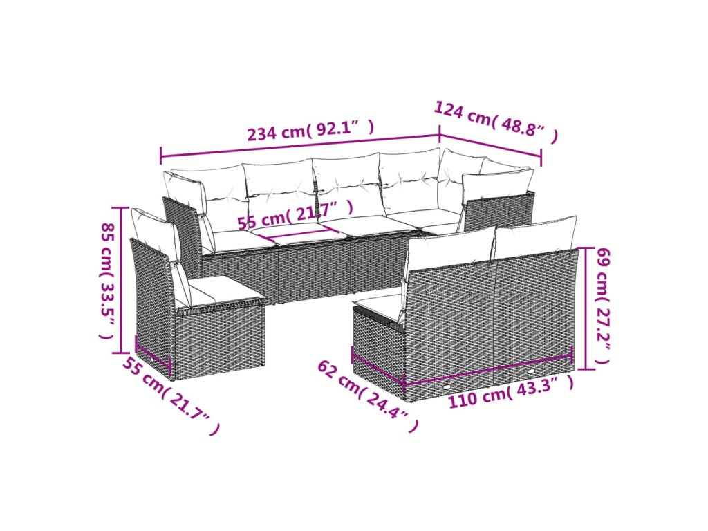 8dílná zahradní sedací souprava s poduškami hnědá polyratan 3249602