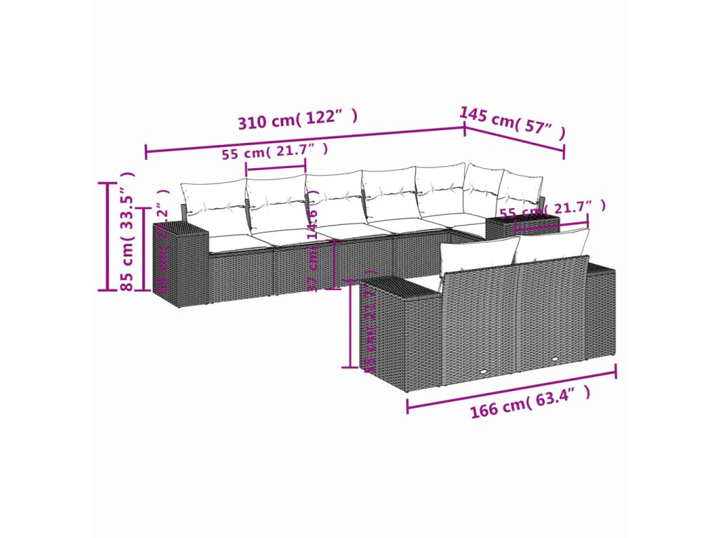 Tato zahradní sedací souprava je dokonalým doplňkem vaší zahrady, terasy nebo dvorku a poskytne vám pohodlné a příjemné místo, kde si můžete povídat s rodinou a přáteli nebo jen tak odpočívat a užívat si pobyt venku.